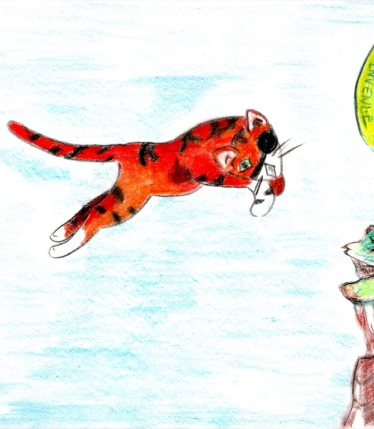 Diese Miezekatze zeichnete ich mit Buntstiften auf schwarzem Papier. Mir gefällt die Wirkung der Farben…