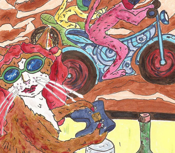 Katzenbilder – im versuchten Comic-Stil, mit Markerstiften koloriert – heben die Stimmung. Selbst wenn das…