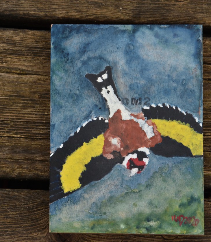 Mein Projekt der Vogelbildnisse auf Zigarrenkistenbrettchen verfolge ich auch weiterhin. Hier das Miniaturbild eines Gartenrotschwanzes,…