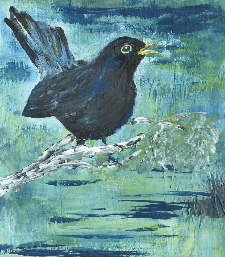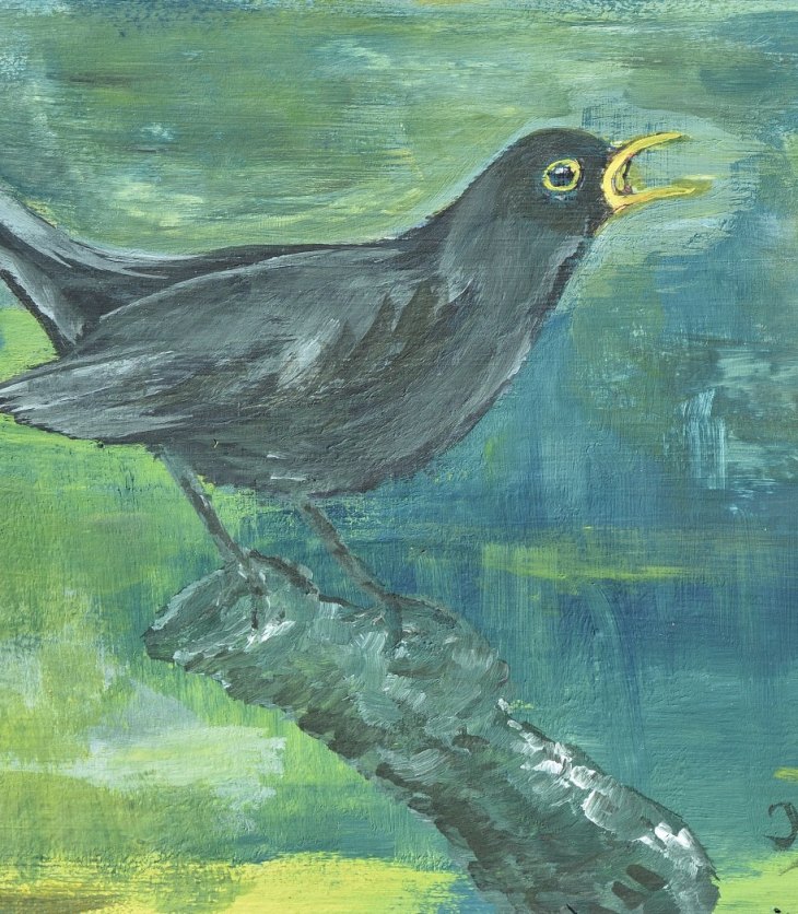Ein weiteres Miniaturgemälde auf Zigarrenkistenbrettchen ist entstanden, eine Blaumeise im Frühlingsglück. …