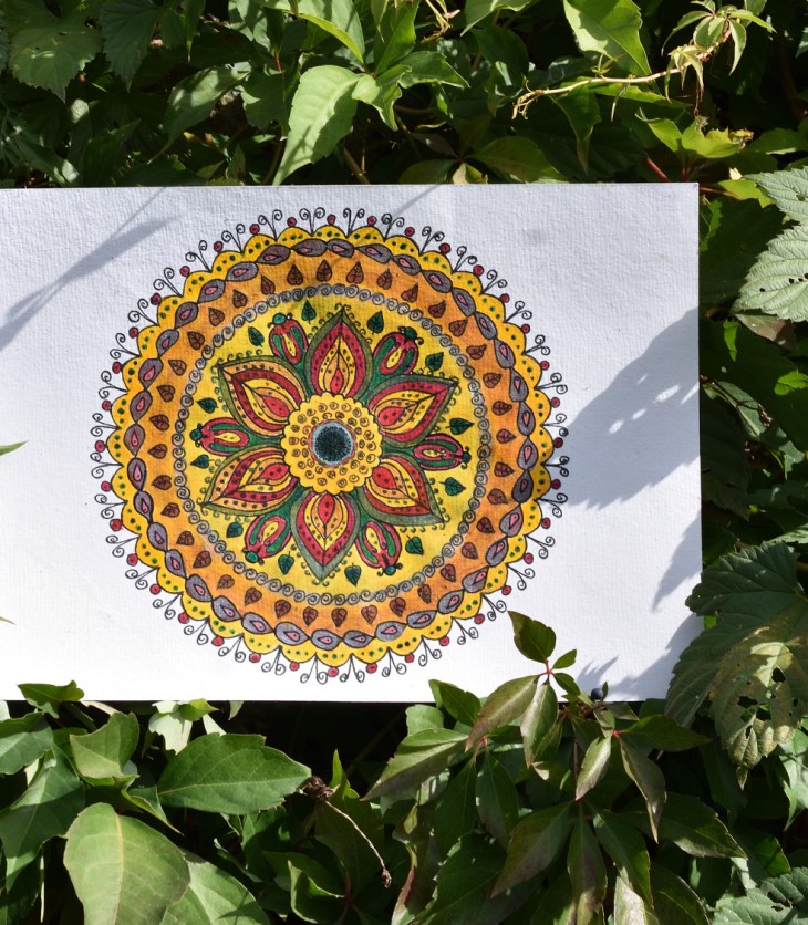 Wie gut, dass ich dieses Mandala mit wasserfester Tusche auf Aquarellpapier zeichnete. So konnte…