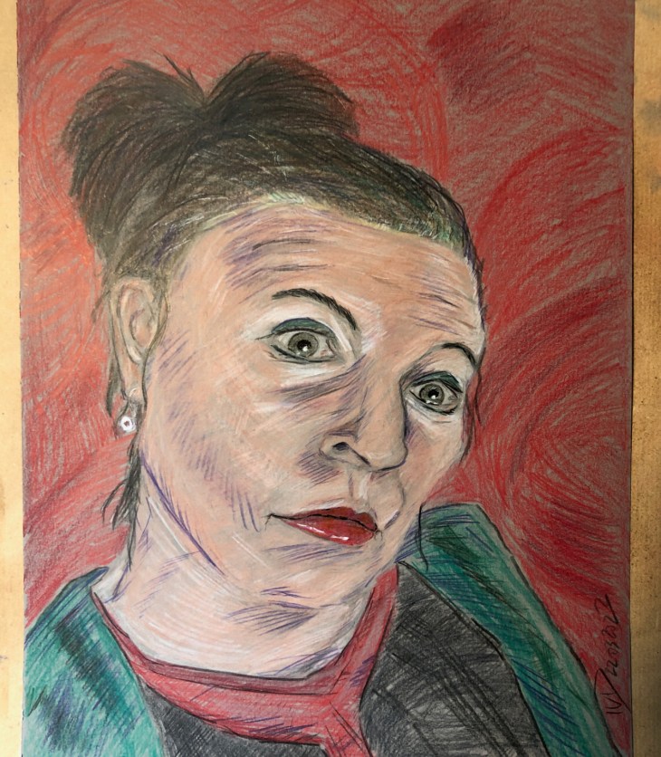 Selbstportrait, 20.-22.03.2023, mit Buntstiften und Finelinern, Format A3 © Ines Udelnow 2023 Self-portrait, 20.-22.03.2023, coloured…