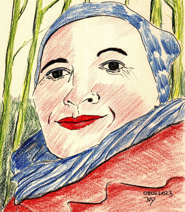 Selbstportrait, 20.-22.03.2023, mit Buntstiften und Finelinern, Format A3 © Ines Udelnow 2023 Self-portrait, 20.-22.03.2023, coloured…