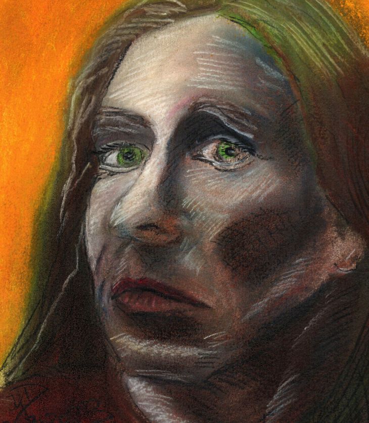 Selbstportrait am 02./03.03.2023, Pastellkreiden auf Papier, Format A4. © Ines Udelnow 2023 Self-portrait on March…