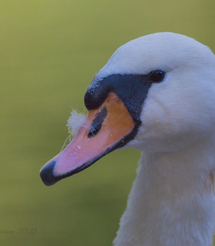 Frau Schwan, Sie haben da was am Schnabel … Schwanendame mit Federschmuck. Beobachtet im Großen…
