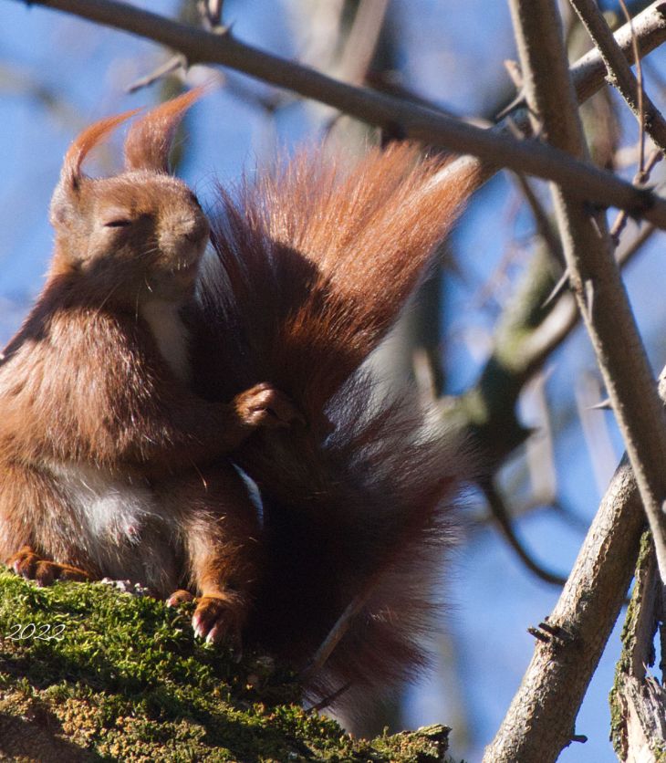 Immer ein hübscher Anblick, so ein rostbraunes Eichhörnchen. Besonders niedlich sieht es aber aus, wenn…