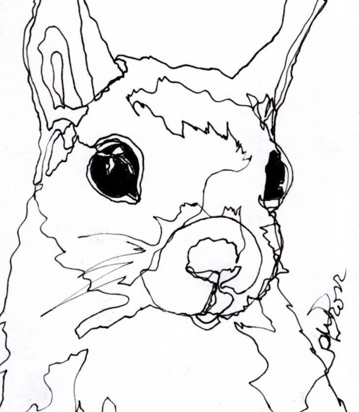 Weitere vier Einlinienzeichnungen – diesmal zum Thema Eichhörnchen. Die Zeichnungen 1-3 entstanden im Postkartenformat. Bereiche…