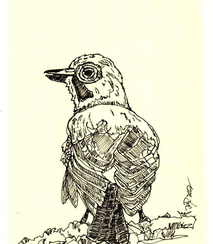 Eichelhäher, Zeichnung mit dem Rotring Radiographen auf Silberburg Büttenpapier, Format A5, Einlinienzeichnung sowie anschließende Schraffur.…