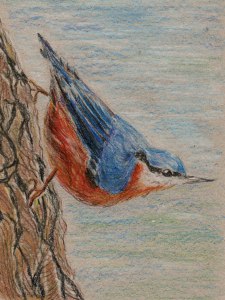 Kleiber, Buntstiftzeichnung auf grauem Skizzenpapier, ca. A5, 14.12.2019