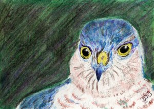 Sperbermännchen, Buntstiftzeichnung A6, November 2019
